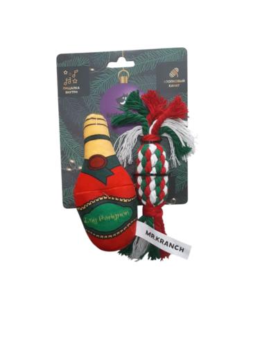 Набор Mr.Kranch для собак Праздничный с пищалкой и хлопковым канатом, бутылка 15х4 см и жгут 22х4 см