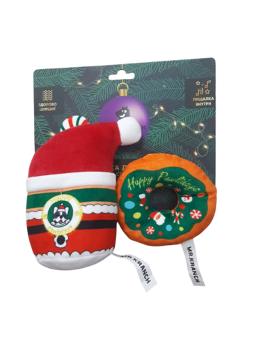 Набор Mr.Kranch для собак Теплый с пищалкой и хрустящими элементами, стакан 15х8 см и пончик 12х3 см